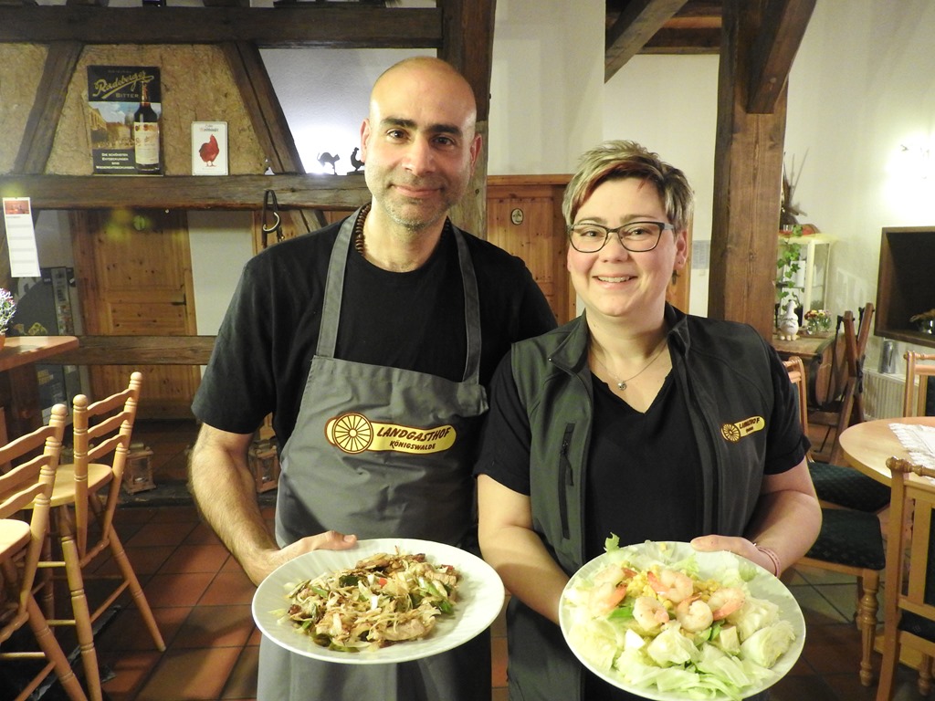 Auch das Team des Landgasthofes ist froh über die getroffene Entscheidung. „Nach dem Praktikum haben wir Yousef gleich einen Arbeitsvertrag angeboten. Obgleich die Deutsche Küche für ihn komplett neu ist, überzeugt die Qualität sofort“, freut sich Inhaberin Kathleen Waldenburger (Foto rechts). Für sie ist damit das Team komplett, nachdem mit Ingrid Kuhle bereits eine Köchin des ehemaligen Seehauses in Langenhessen angeheuert hat.